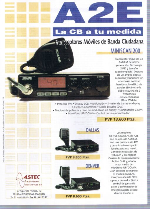 Ante la creencia de que este equipo u otros de la marca A2E son Yaesu, debo aclarar que no lo son. A2E es una marca creada por Astec, importador en España de Yaesu, y de otras marcas. Yaesu nunca ha fabricado equipos de CB.