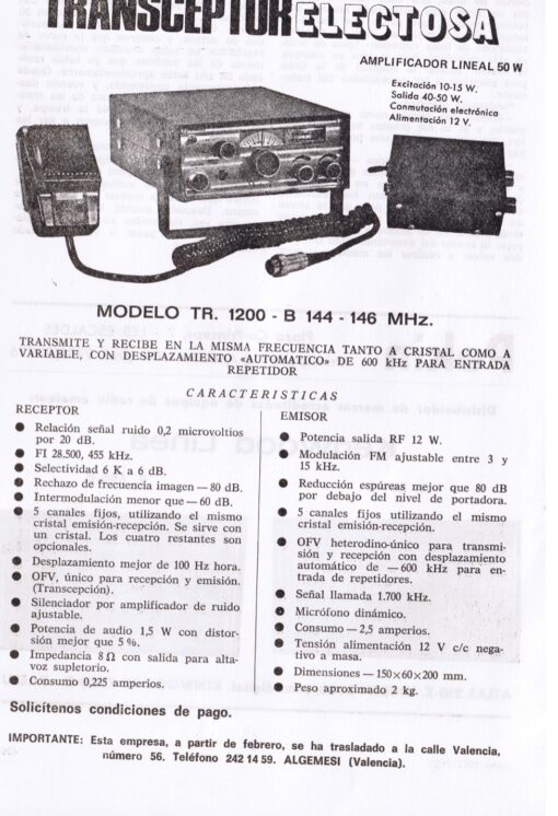 Equipo analógico de VHF, famoso en España a mediados de los 70. Fue desarrollado por Electrónica Torres S.A., de Valencia, y era conocido por "Electosín".