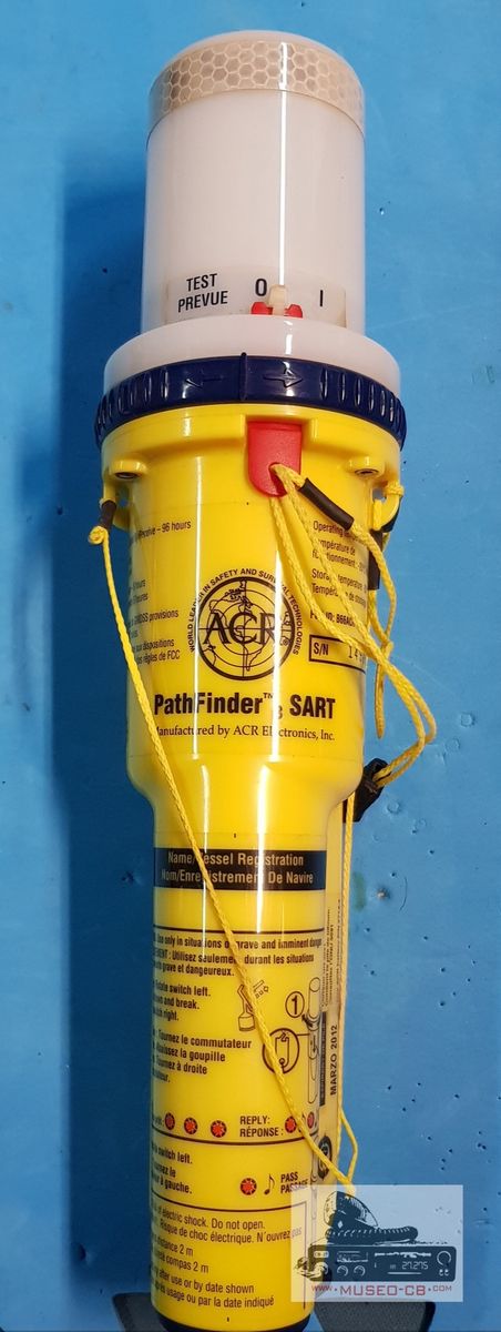 Transpondedor de radar para embarcaciones de supervivencia PathFinder 3. Cuando es interrogado por el radar, esta unidad transmite 12 señales intensas de pantalla de radar, lo que mejora enormemente los esfuerzos de búsqueda y rescate. Un transpondedor de búsqueda y rescate (SART) es obligatorio para todas las embarcaciones comerciales y cualquier embarcación que lleve más de una balsa salvavidas.