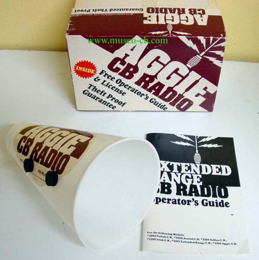 No deja de ser un artículo de broma, una bocina para CB. Pero es curiosa. Viene en su caja original, con “instrucciones” de uso y “garantía”. A destacar el detalle de los botones de volumen y squelch en la bocina.