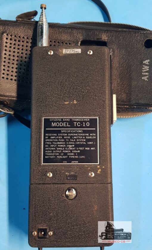 Elegante walki del 66, metálico y provisto de su funda de cuero. Algo deteriorado por el salitre.