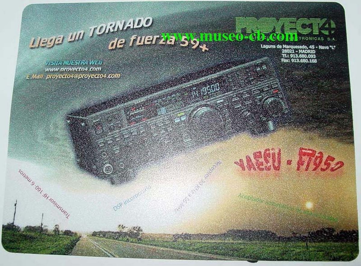 Alfombrilla para ratón de ordenador de la tienda Proyecto 4 de Madrid. Con foto de la Yaesu FT-950.