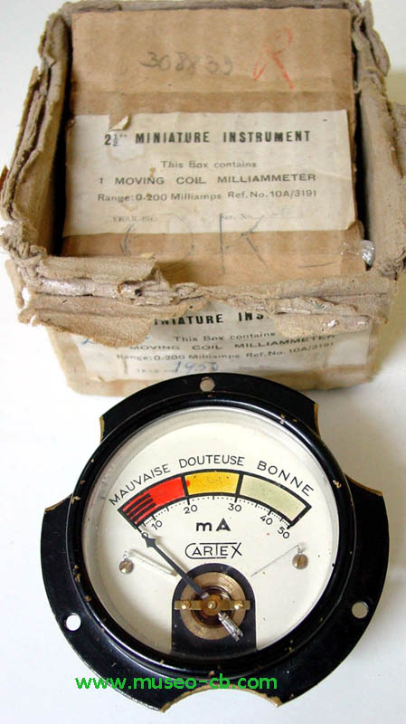 Miliamperímetro “miniatura” (para la época), de 2 pulgadas y media, y hasta 200 miliamperes.