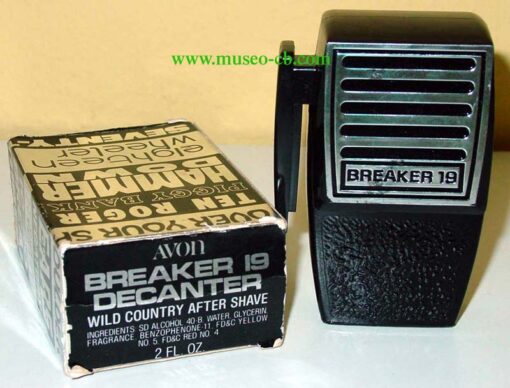 Curioso recipiente de Loción para después del afeitado de la marca Avon. Tiene forma de micro y en la caja se hace referencia al argot de CB. Está vacío y es usado.