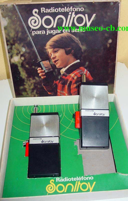 Pareja de walkis de juguete Aype Sonitoy (Halcón 1), en su caja original. Fabricado en España. El lema de su publicidad era "es de verdad".