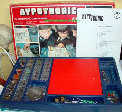 Juego electrónico de componentes, que podía montar hasta 32 circuitos, entre los que se incluye un receptor y un emisor.