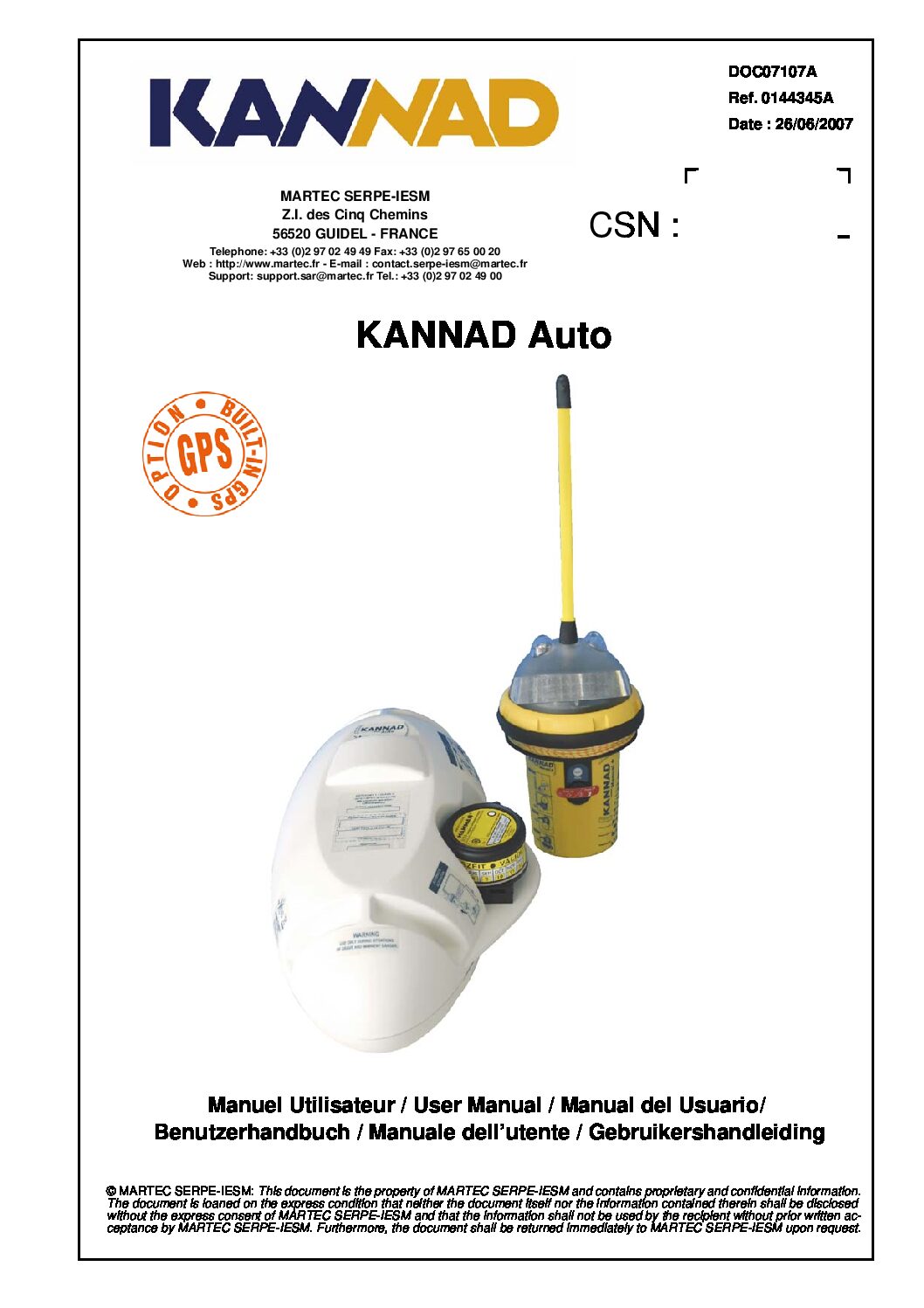 Activada, la KANNAD Auto transmite, en la frecuencia de 406 MHz, un mensaje codificado con un único número que identifica la alerta y la baliza. Este mensaje es captado por los satélites COSPAS-SARSAT los cuales lo registran y retransmiten continuamente a los terminales de usuario locales (LUT). Gracias a los satélites geoestacionarios (GEOSAR) la alerta es recibida y transmitida a cualquier lugar del mundo en el plazo de minutos.