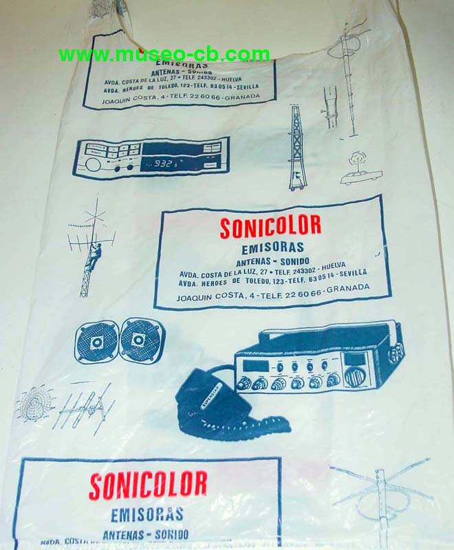 Bolsa de plástico de la tienda Sonicolor, de Sevilla, aunque con delegaciones en Huelva y Granada.