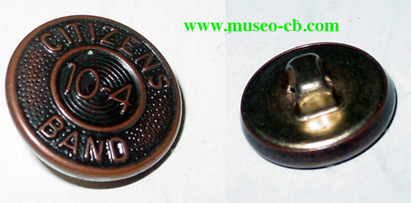Botón de latón de una camisa con la inscripción Citizens Band 10-4.