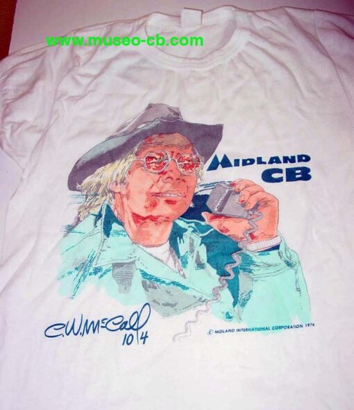 Camiseta de 1976 de la casa Midland, con la imagen del cantante CW McCall, que popularizó con sus canciones la CB, entre otras con la banda sonora de la película Convoy.