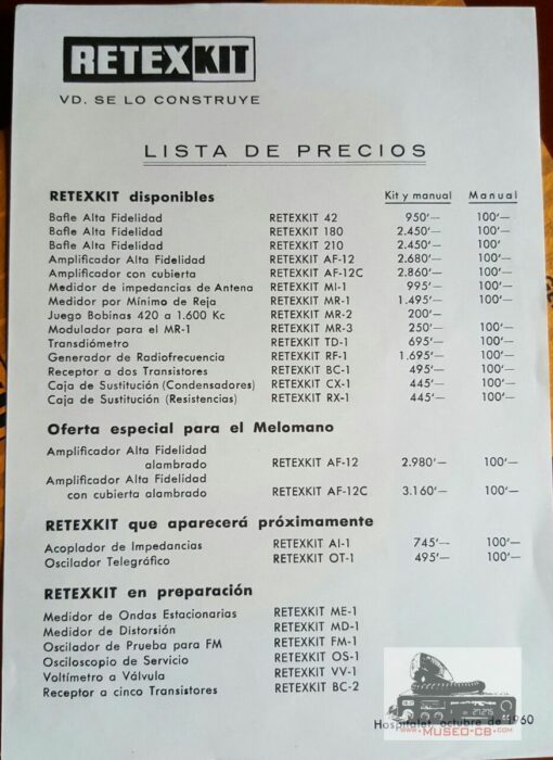 Catálogo de la empresa Retexkit de 1960. En ese momento no había gran cosa de radioafición, y menos aún de CB