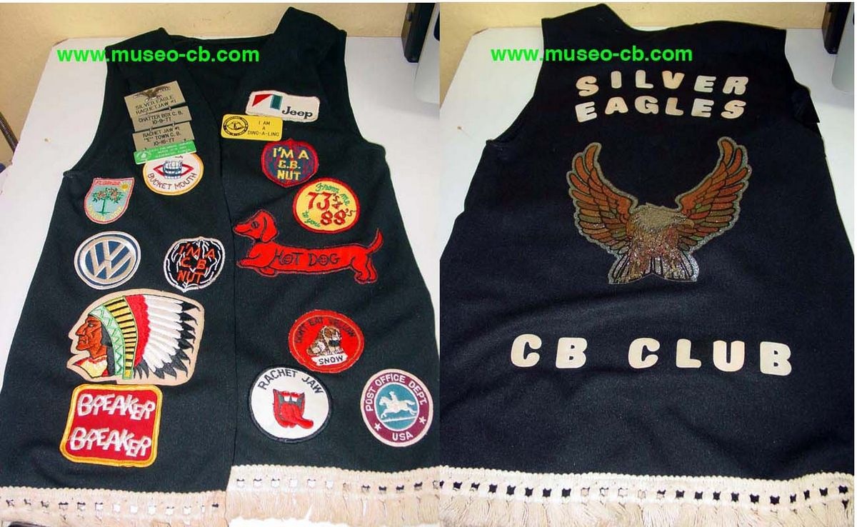 Curioso chaleco de un cebeísta, miembro del Club Silver Eagle de Estados Unidos. El chaleco tiene numerosos "parches" en tela de CB.