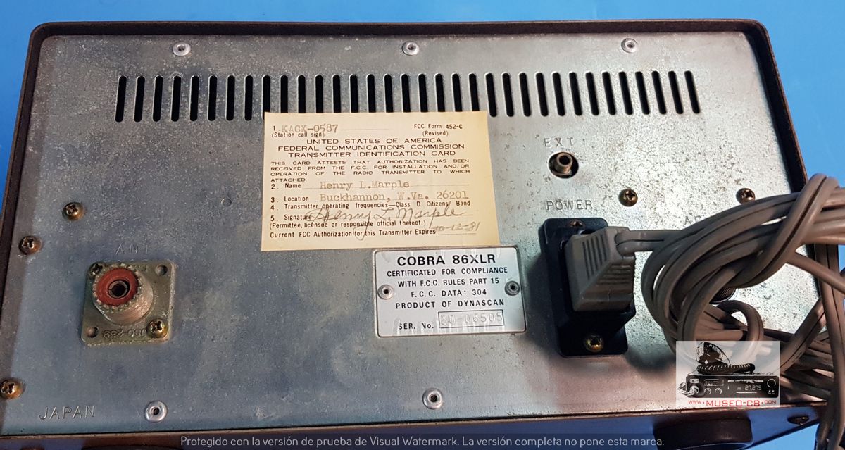 Elegante emisora de base Cobra, de 40 canales AM. Era propiedad de KACX-0587, de Buckhannon, ciudad ubicada en el condado de Upshur en el estado estadounidense de Virginia Occidental, que tenía licencia hasta 1981.