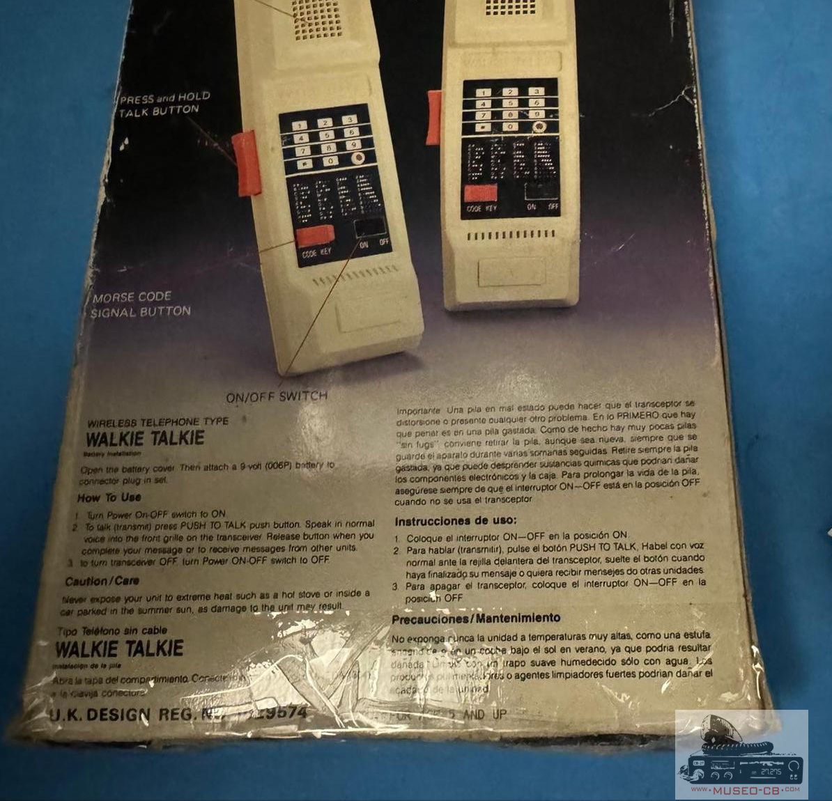 Walki de juguete, muy popular en los 80. Con código morse y pulsador. Diseñado en Reino Unido y construído en Japón.