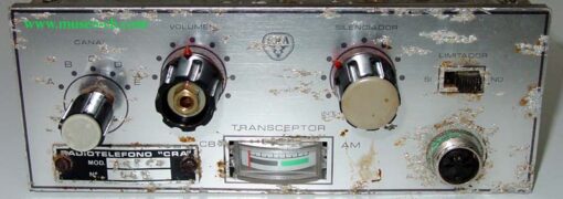 Un raro equipo de CB del año 70, construido en España. La placa del frontal indica Radioteléfono CRA, por lo que es de suponer que estaría dedicado a pesqueros (fue adquirido por arl 100 en Galicia). Como curiosidad, lleva los canales soldados directamente al conmutador.
