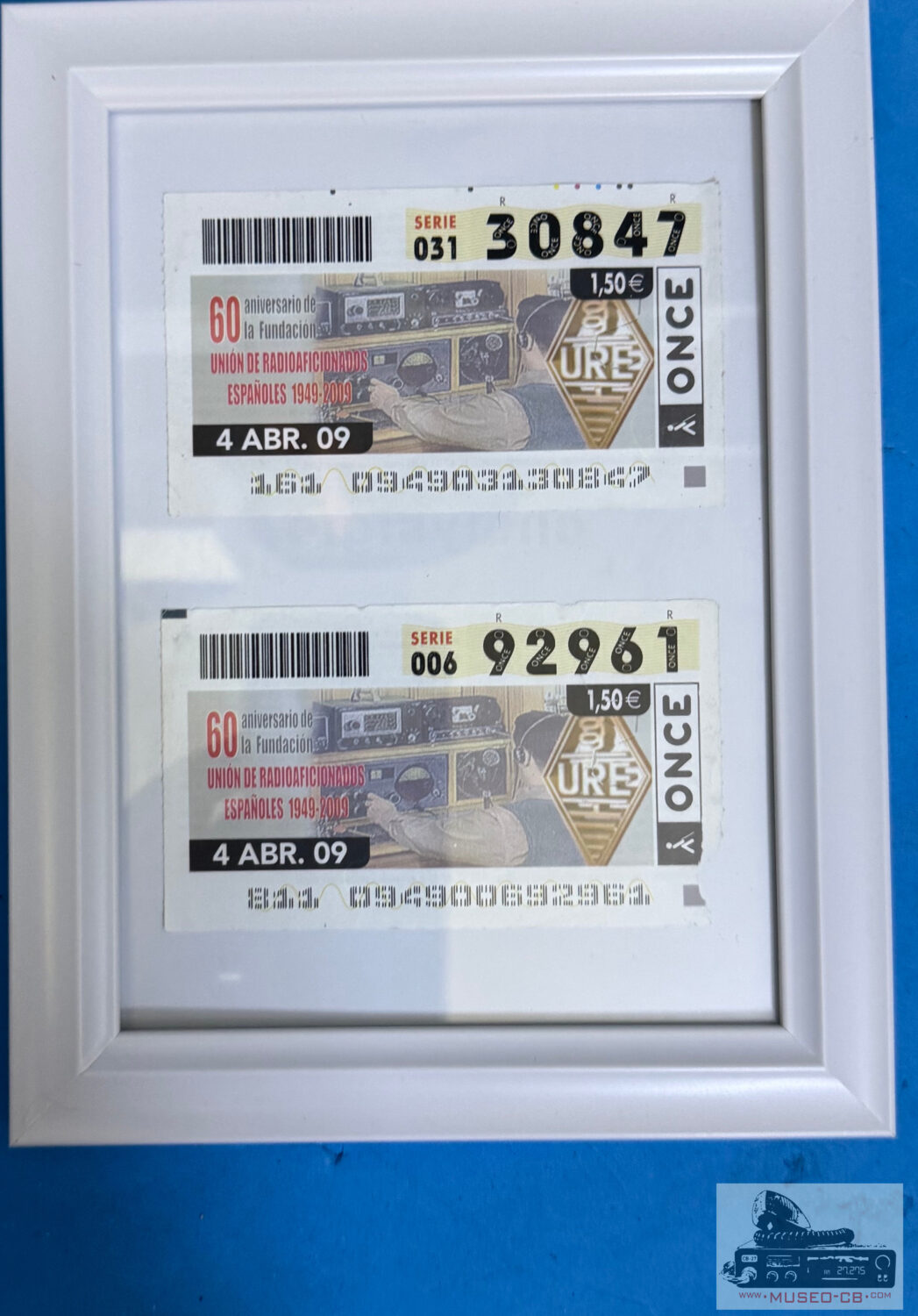 Cupón de la Organización Nacional de Ciegos Españoles (ONCE), dedicado al 60 aniversario de la Unión de Radioaficionados Españoles (URE), jugado el 4 de abril de 2009