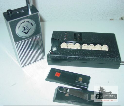 Rarisima pareja de walkie. Clasificados como juegos educativos. En el de mayor tamaño se puede intercambiar los dados numerados, creemos que con el objetivo de tramsmitir tonos de señales codificadas. La información en la red está en japonés y no hemos podido traducirla, pero la empresa fabricó en esa época juguetes de aprendizaje electrónico. Lo cierto es que es una pareja rara.