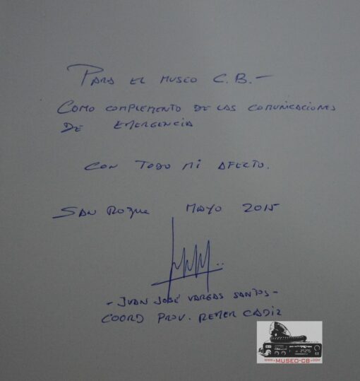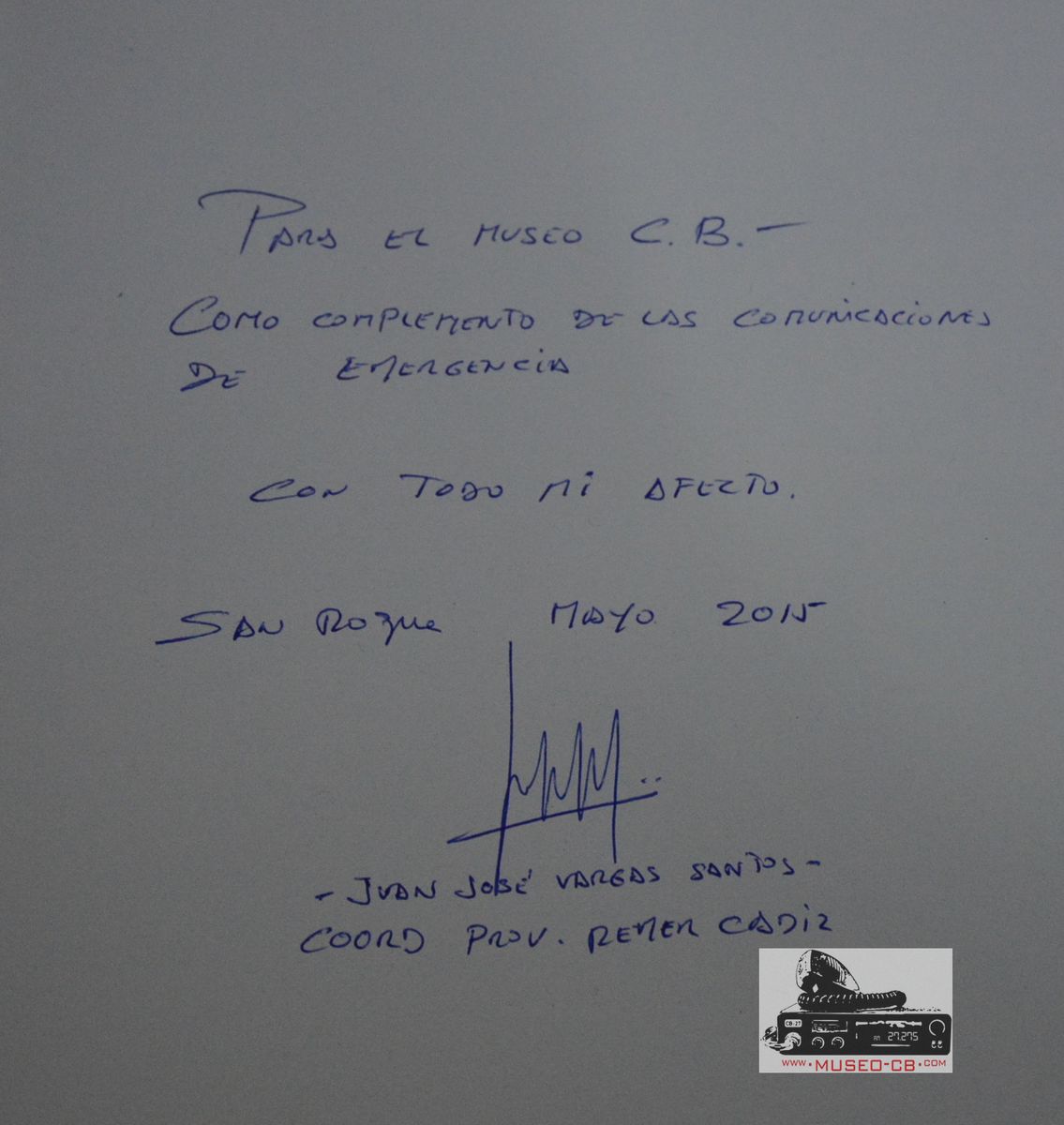 Dedicado al Museo CB por EA7FPJ Juan José, coordinador provincial de Remer en Cádiz en 2015, con motivo de una exposición de Museo CB sobre las emergencias en radio, en especial en CB.