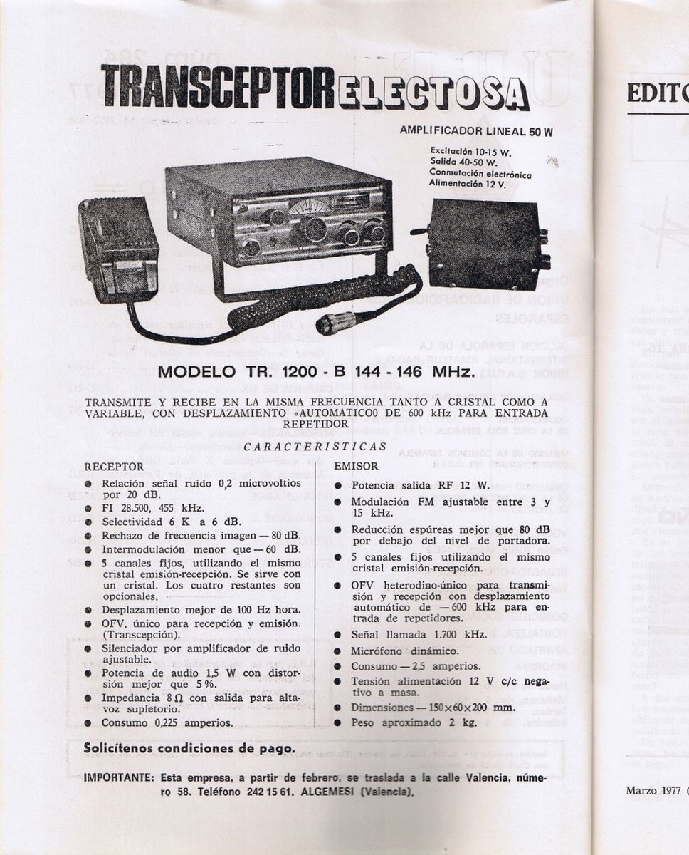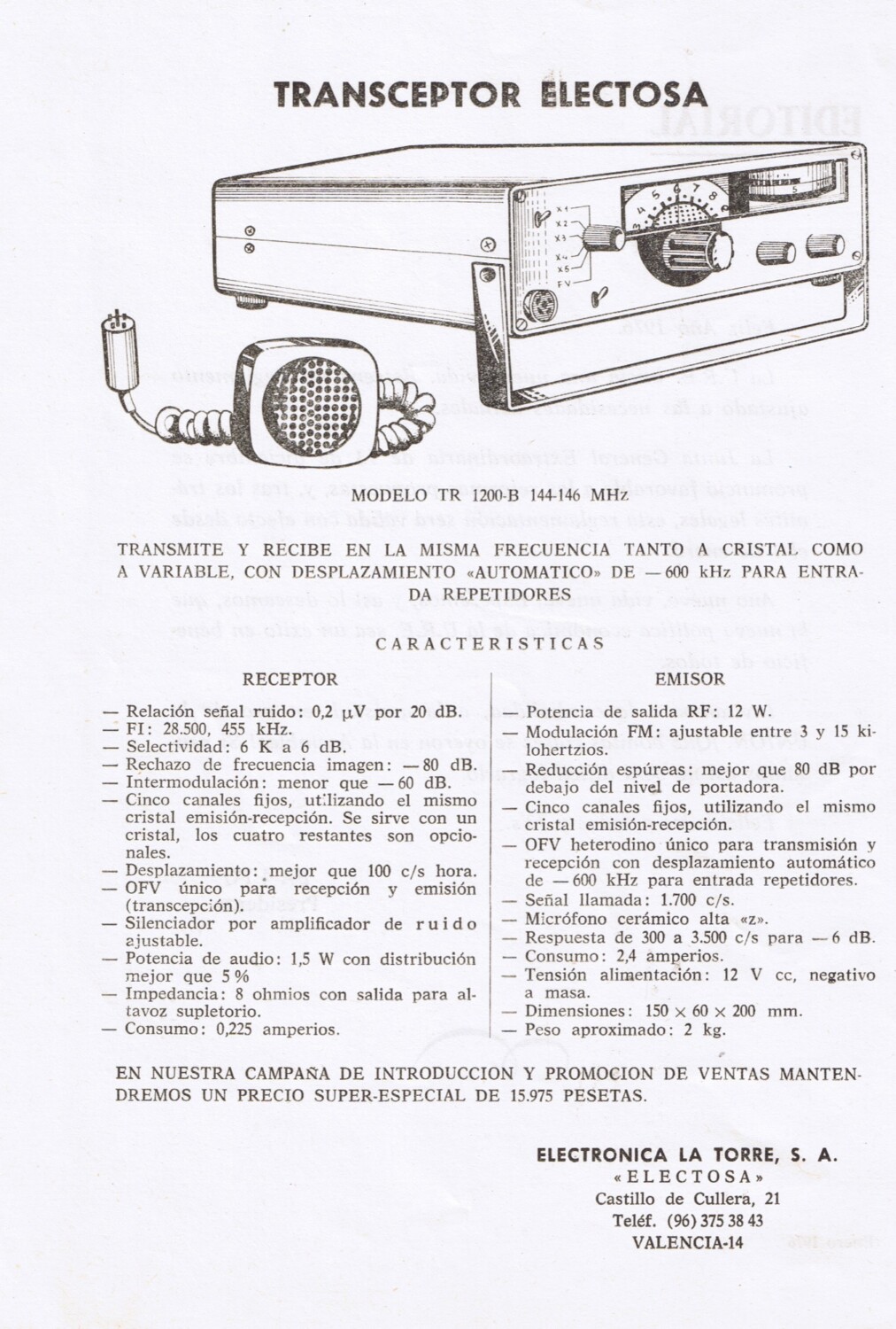Equipo analógico de VHF, famoso en España a mediados de los 70. Fue desarrollado por Electrónica Torres S.A., de Valencia, y era conocido por "Electosín".