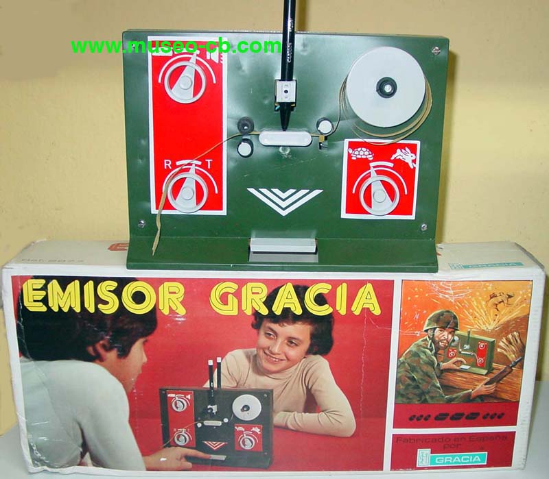 Curioso juego de los años 60 consistente en que dos niños se comuniquen por telegrafía. Lo que uno pulsa, un rotulador pinta sobre una cinta los puntos y rayas mientras que se escucha un pitido. Puede variarse la velocidad y el volumen.