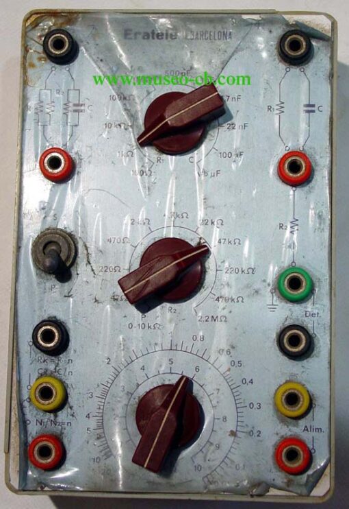 Simulador de resistencias y condensadores autoconstruido. Del curso de Electrónica Eratele.