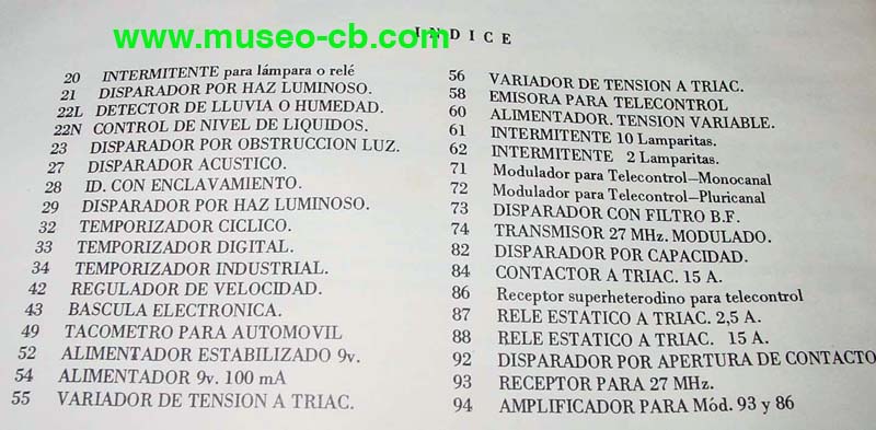 En el se pueden encontrar esquemas para Emisora y Moduladores para telecontrol, alimentadores y emisores y receptores de 27, entre otras
