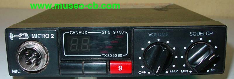 Pequeña emisora de 40 canales, con acceso directo al canal 9 y cambio de canales mediante teclas.