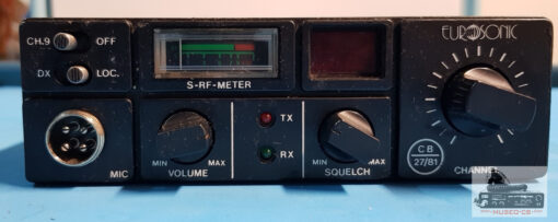 Emisora con los canales ingleses, en la parte alta de la banda. En la parte trasera dispone de un atenuador de potencia.
