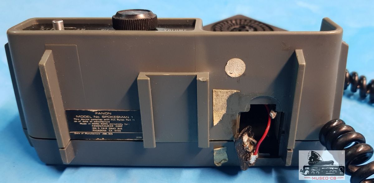 Walkie Talkie Fanon Spokesman para Bicicleta. El Fanon venía con un clip para montarlo en una bicicleta. Lleva un reflector en la parte delantera. Con el los niños podían pasear y jugar al sheriff y al camionero, profesiones que se podían ver en la televisión con transceptores en esos años. Lleva un receptor tanto de onda media, como de los 40 canales de CB.