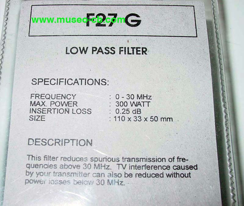 Filtro paso bajo de Grauta. Para una potencia máxima de 300 watios de 0 a 30 Mhz, con pérdidas de 0,25 dbs.