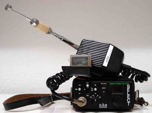 Un modelo muy poco conocido. Es una emisora totalmente portátil, con características de una móvil, lo que la hace muy versátil. Lleva portapilas, antena y micro con dígitos y control de volumen.