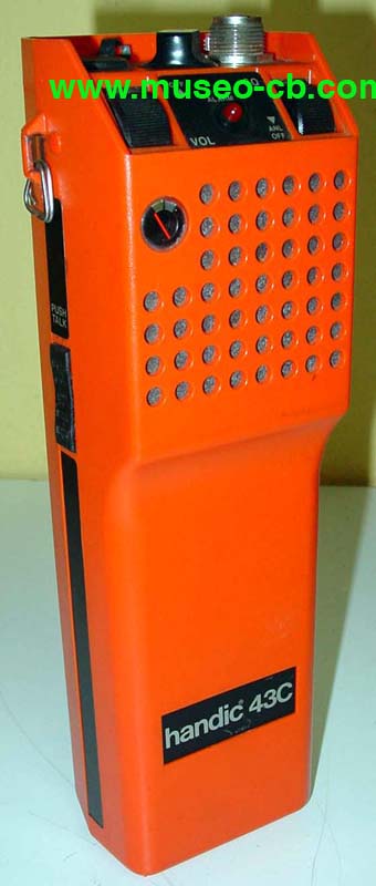 Walki perteneciente a un saga gloriosa, todos de color naranja. 6 canales y dos watios. Frente a su hermano menor, el Handic 15, éste modelo (43) y otros (21, 32, 60, etc) tiene la carcasa de plástico, haciéndolo más liviano. De tamaño, es igual a los de la serie 60, más grandes que los 20 y los 30.