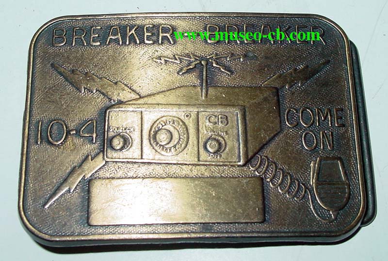 Hebilla de cinturón, con la inscripción Breaker Breaker, una emisora de 23 canales, 10-4 y Come On (Adelante)