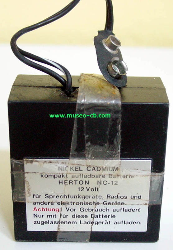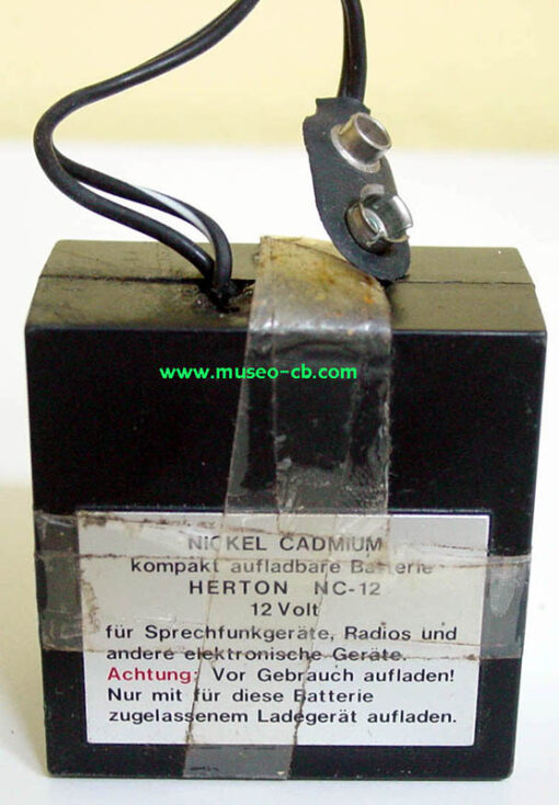 Batería recargable de Niquel Cadmio de la casa de emisoras Herton. Pensada para los walkis, ya que cabe en el habitáculo destinado a las pilas de estos equipos.