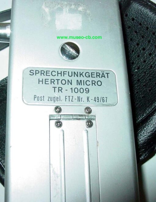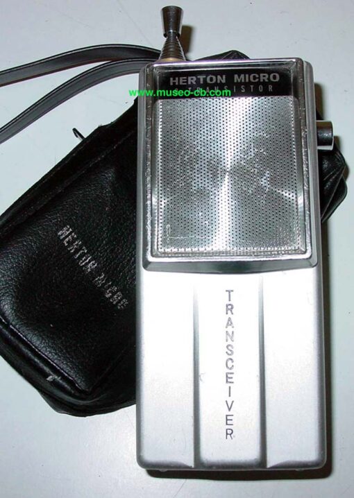 Precioso walki con funda de cuero. Cabe en la palma de la mano. Todo metálico y brillante.