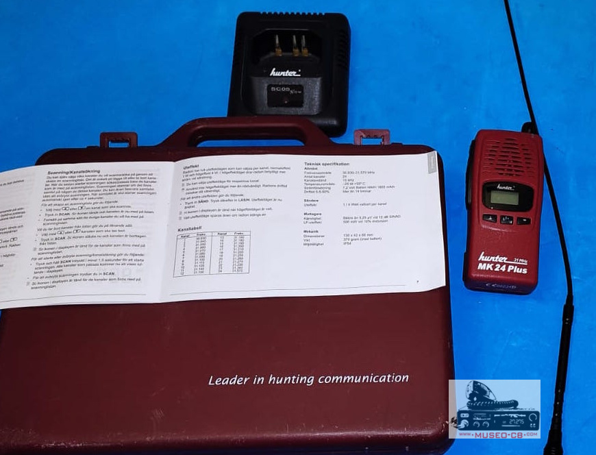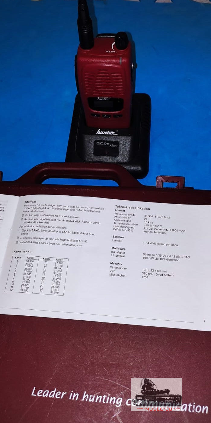 Curioso walki, con su estuche, en la banda de 30.900 a 31.570 Mhz. Procede de Suecia, donde se usaba por los forestales.