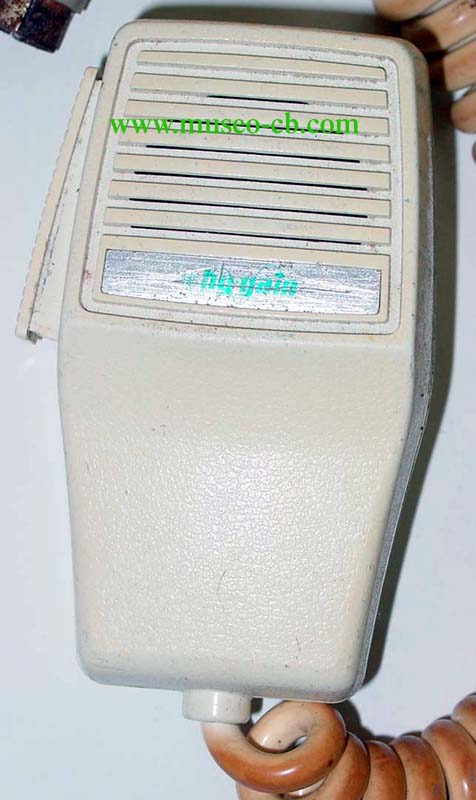 Micrófono de mano perteneciente a una emisora Hy-Gain, posiblemente de banda marina, por su color blanco.