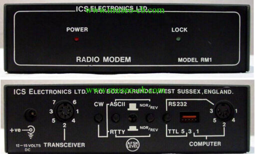 Modren radio ICS Electronics LTD. Se conecta a un ordenador por un conector RS232. Se puede trasmitir en CW, ASCII, RTTY, en modo normal y reverse.