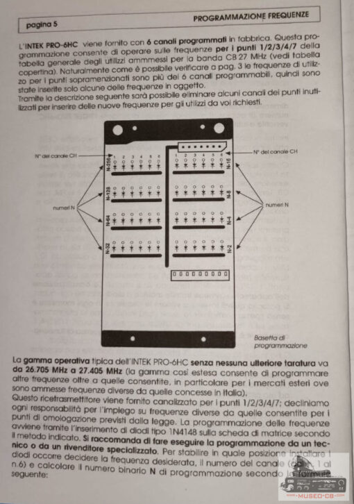 Curioso walki italiano de CB orientado al mercado profesional. Permite la programación de los 6 canales a través de una matriz diodos