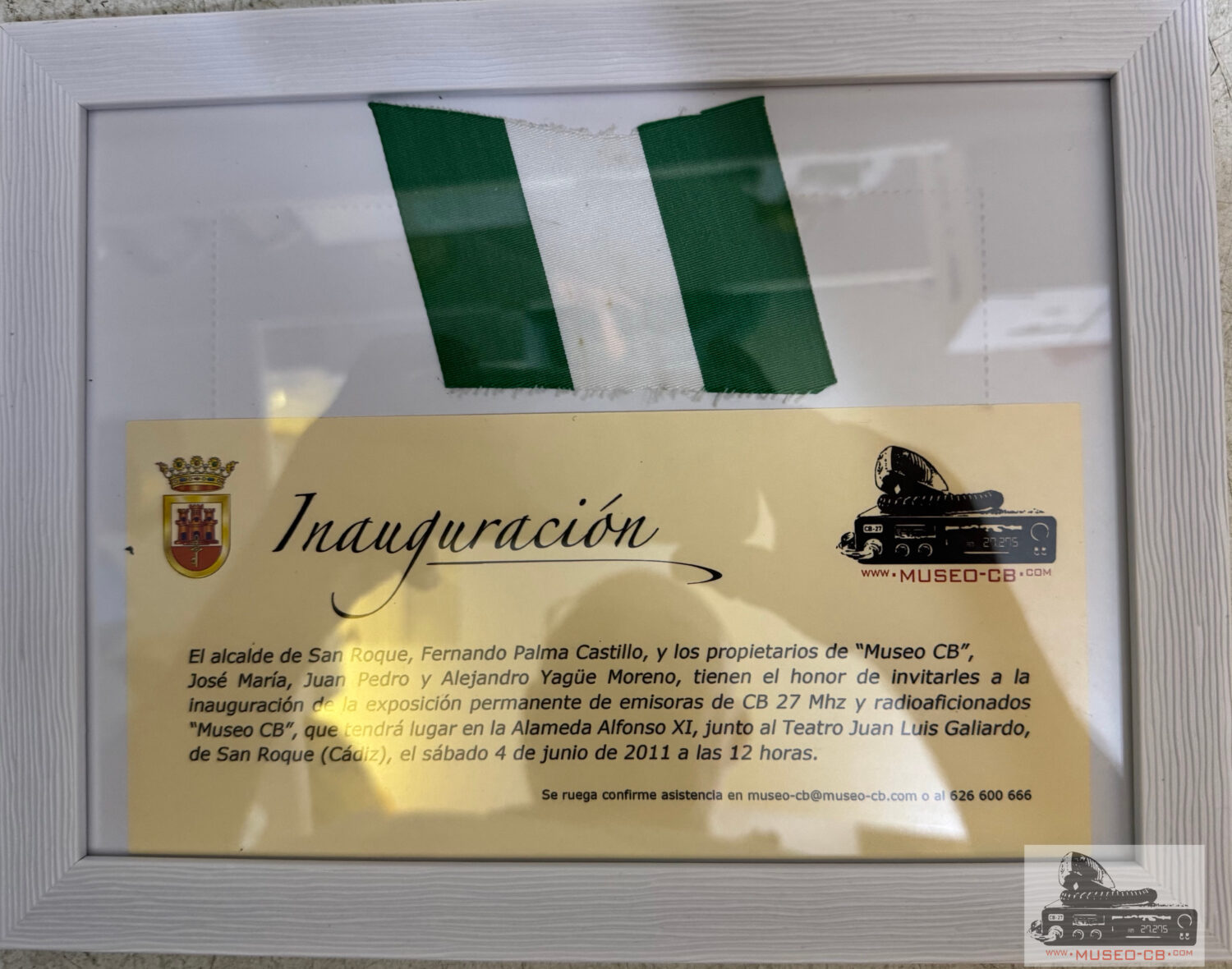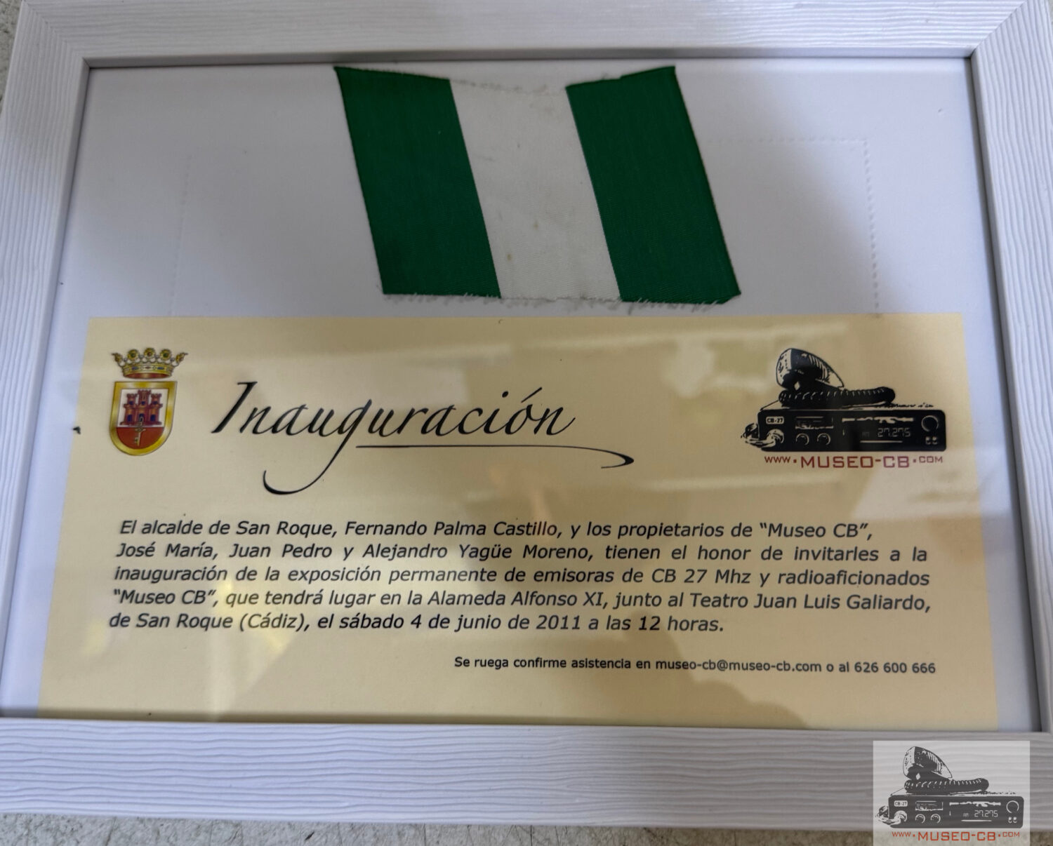 Invitación cursada por el Ayuntamiento de San Roque en 2011 para la inauguración del Museo CB, que tuvo lugar el sábado 6 de junio de 2011.