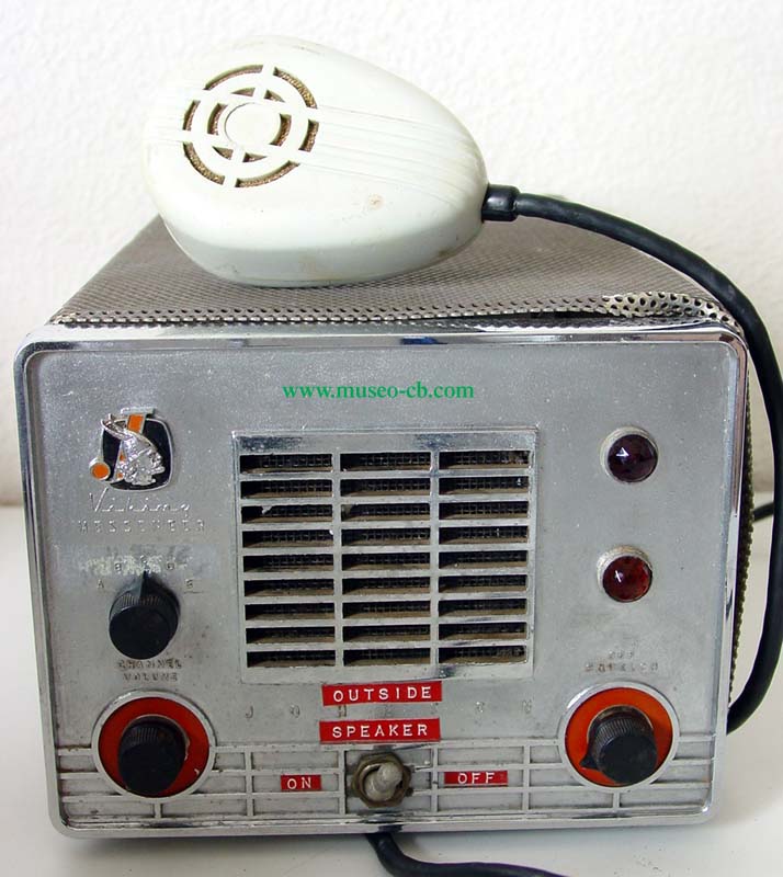 Una de las primeras emisoras de CB. A válvulas. Puede alimentarse a 12 voltios, y por tanto, ser colocada en un vehículo.