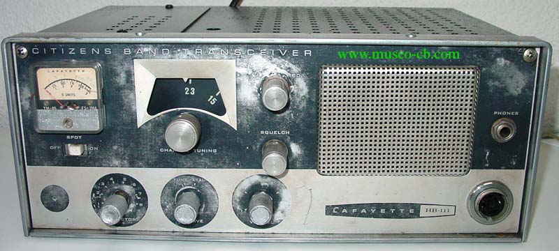 Equipo a válvulas de finales de principios de los 60. Uno de los primeros equipos de CB. Incorpora VFO para la recepción de los 23 canales de la banda, y los canales de transmisión lo obtiene a través de cristales de cuarzo.