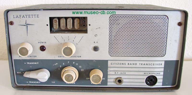 Posiblemente, una de las primeras emisoras construidas y la primera de Lafayette. El interruptor de transmisión está situado en el frontal de la emisora, no en el micrófono.