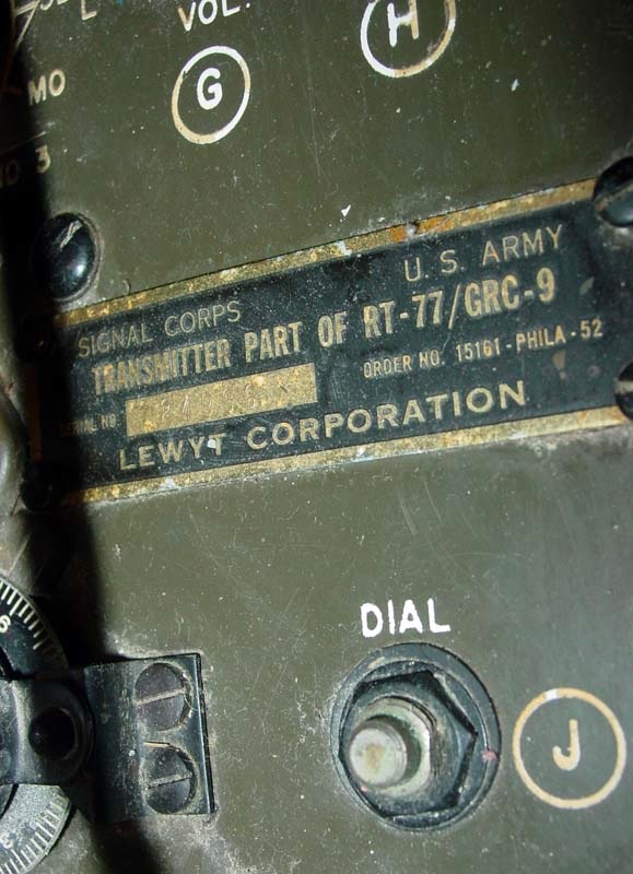 Lewyt RT-77A/GRC-9 El RT-77/GRC-9 en Mochila o transceptor Vehicular La Estación de Radio AN/GRC-9 es un transmisor de radio de baja potencia y un receptor que se utiliza, ya sea en tierra o en vehículos. Hecho en EE.UU. o bajo licencia en Alemania y Francia. Cobertura de 6,6 a 12 MHz continuamente sintonizable en 3 bandas AM-CW. AF y RF Controles de ganancia y las tomas de auriculares. Requiere 1,4 VCC a 450 mA y 105 V a 20 mA.