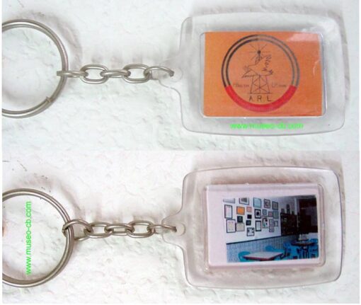 Este llavero con el anagrama de la Agrupación de Radioaficionados Linenses de Banda Ciudadana en el anverso y una fotografía de parte de la sede que el club tenía en la Avenida de España de La Línea de la Concepción (Cádiz) por el reverso, fue un regalo que el Radio Club ARL CB realizó a sus socios con motivo de una Navidad.