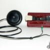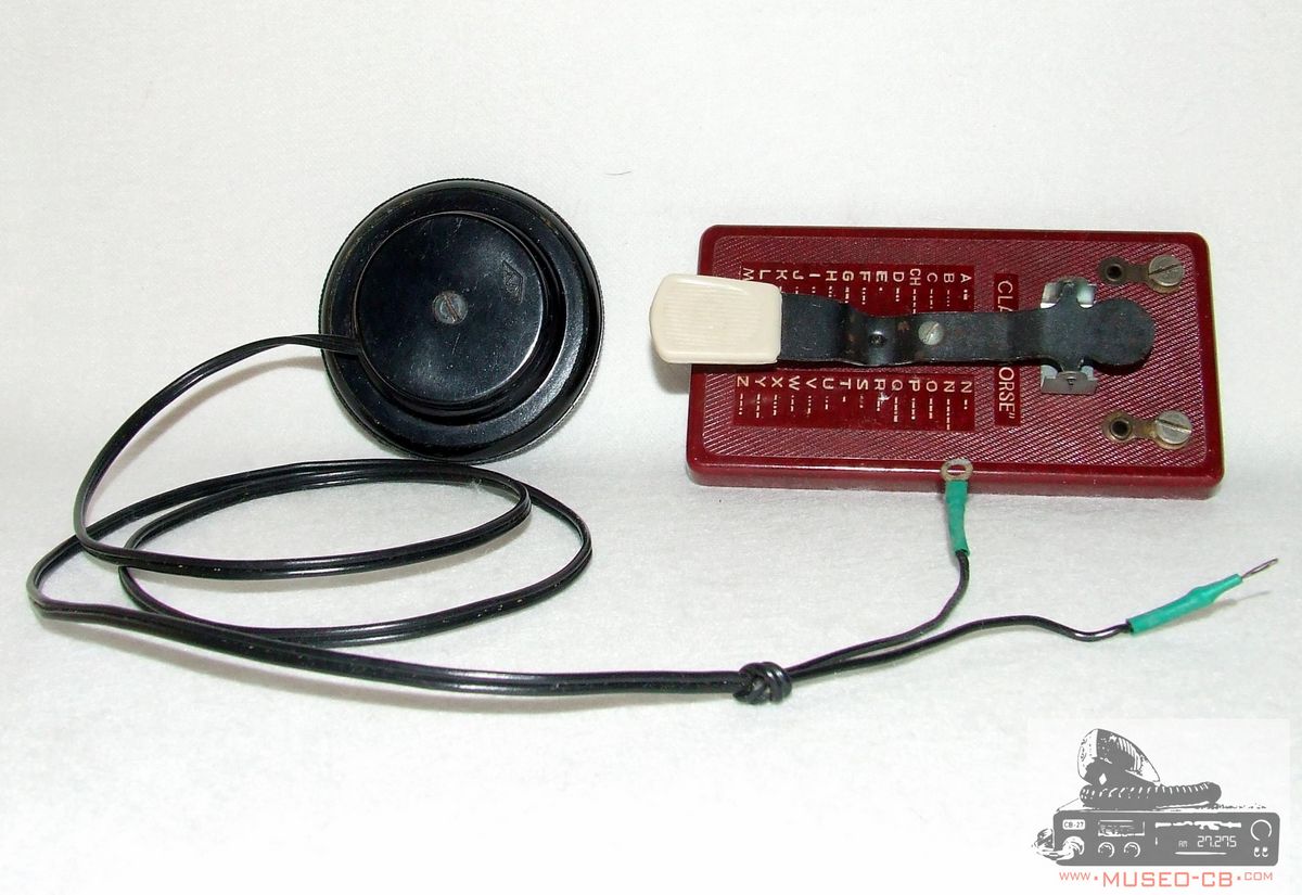 Manipulador morse de pequeño tamaño fabricado en bakelita en España. Tiene serigrafiado el código morse.