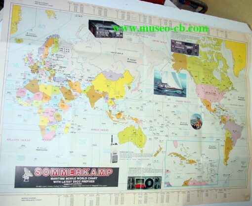 Mapa mundial para radioaficionados, realizado por la marca de emisoras Sommerkamp en los años 80.