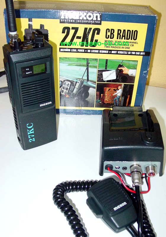 Walki de 40 canales que en la caja incluye un soporte para el vehículo que hace las veces de cargador y tiene una salida de micro.