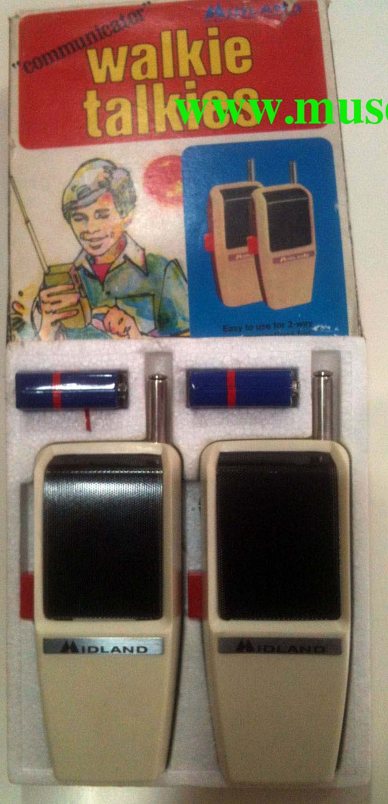 Walki talkies de juguete de la prestigiosa marca Midland. Viene con las pilas Tximist originales de la época, 1973. En su caja original.