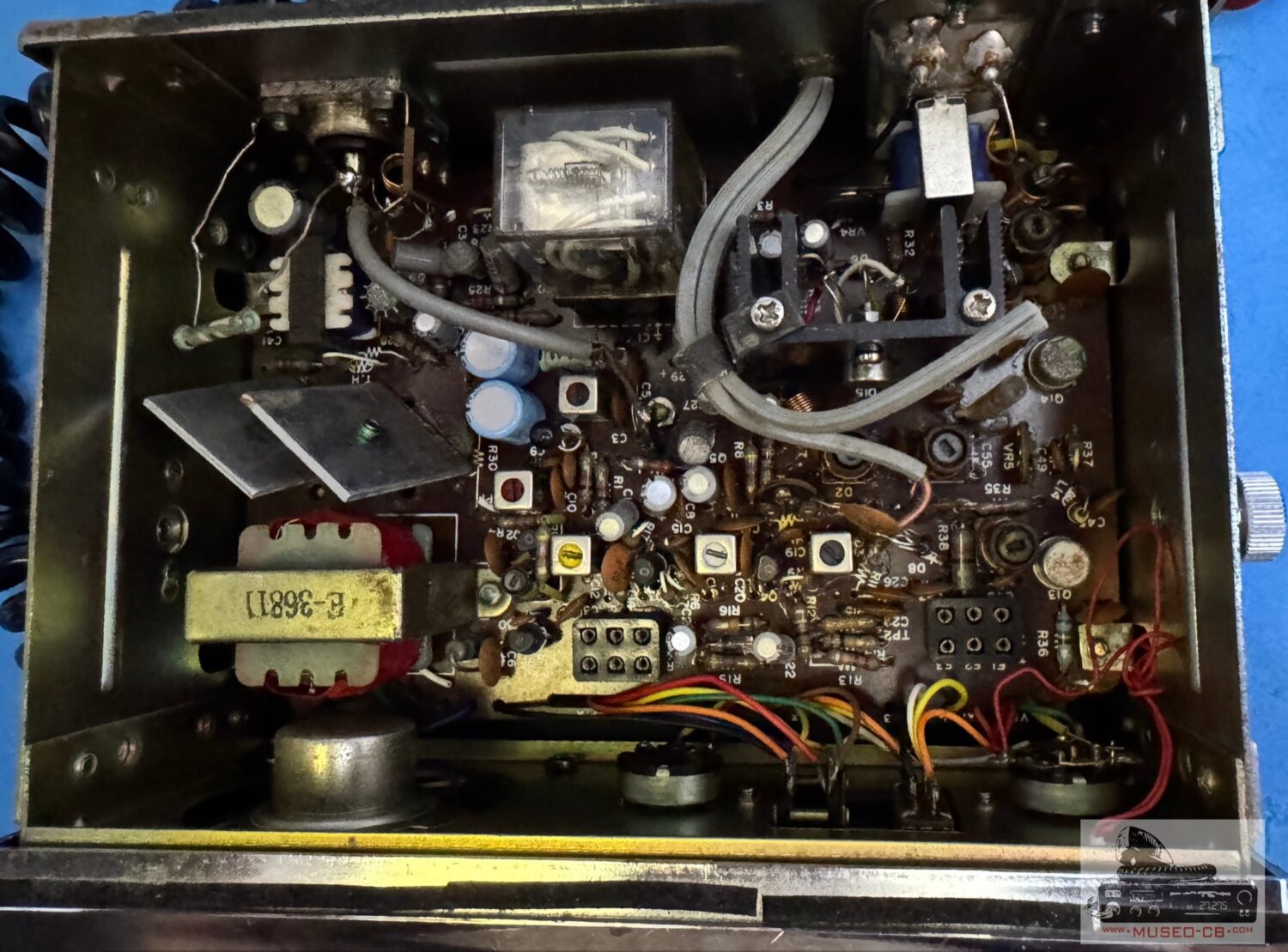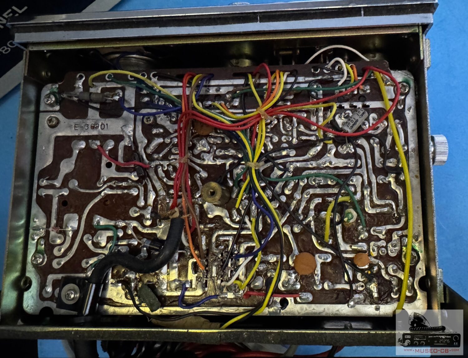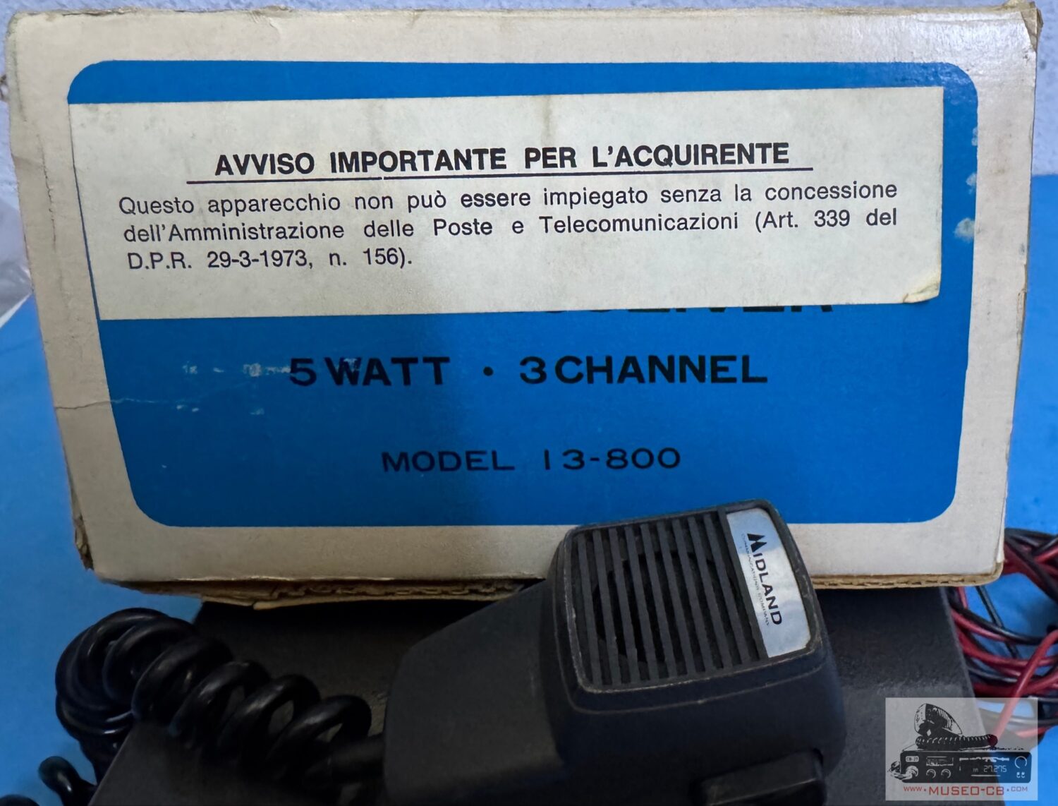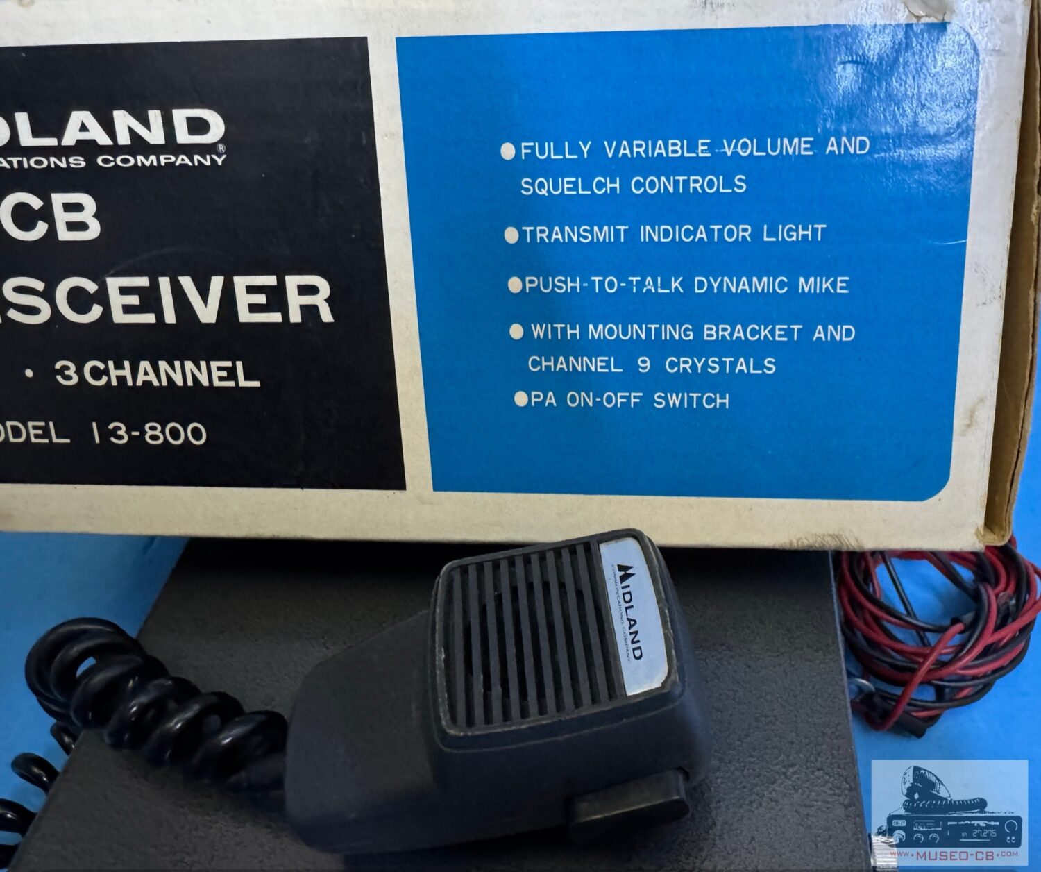 Equipo sencillo de los años 70 de CB, con 3 canales a cristales de cuarzo, uno de ellos el canal 9, indicado e el selector como Help. Altavoz frontal.